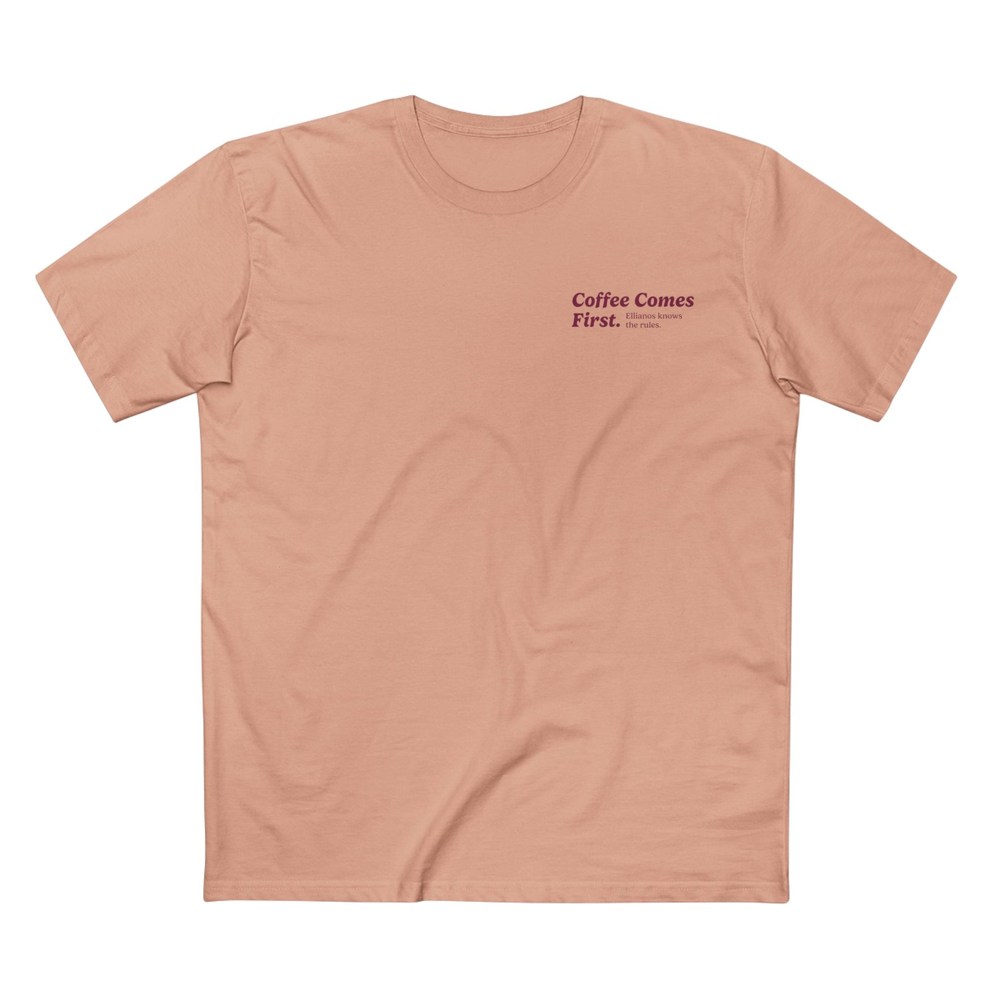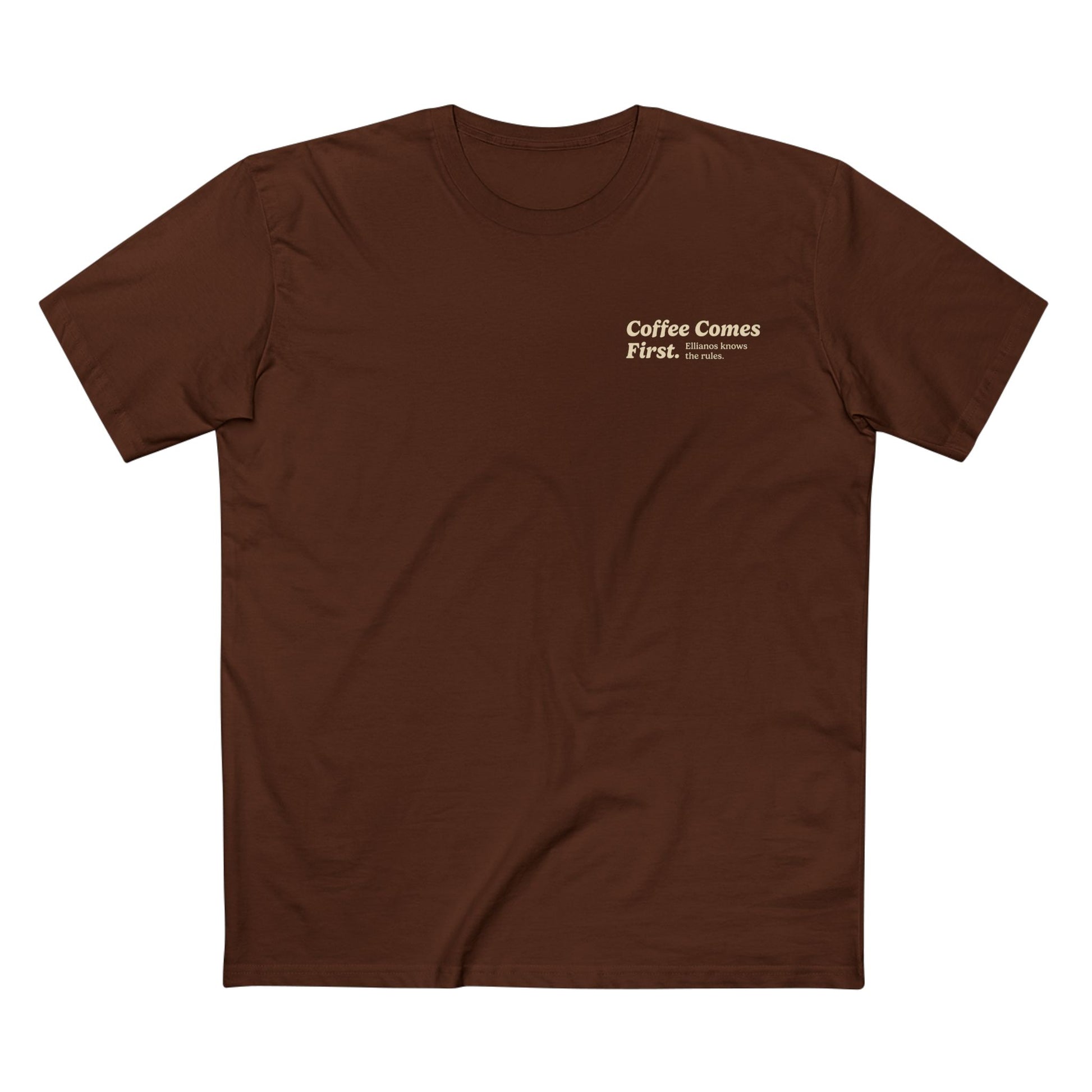 For the ones with their priorities straight. The Coffee Comes First T-shirt is simple, classic, and unmistakably Ellianos. A statement piece for anyone who believes that life goes smoother when coffee leads the way.