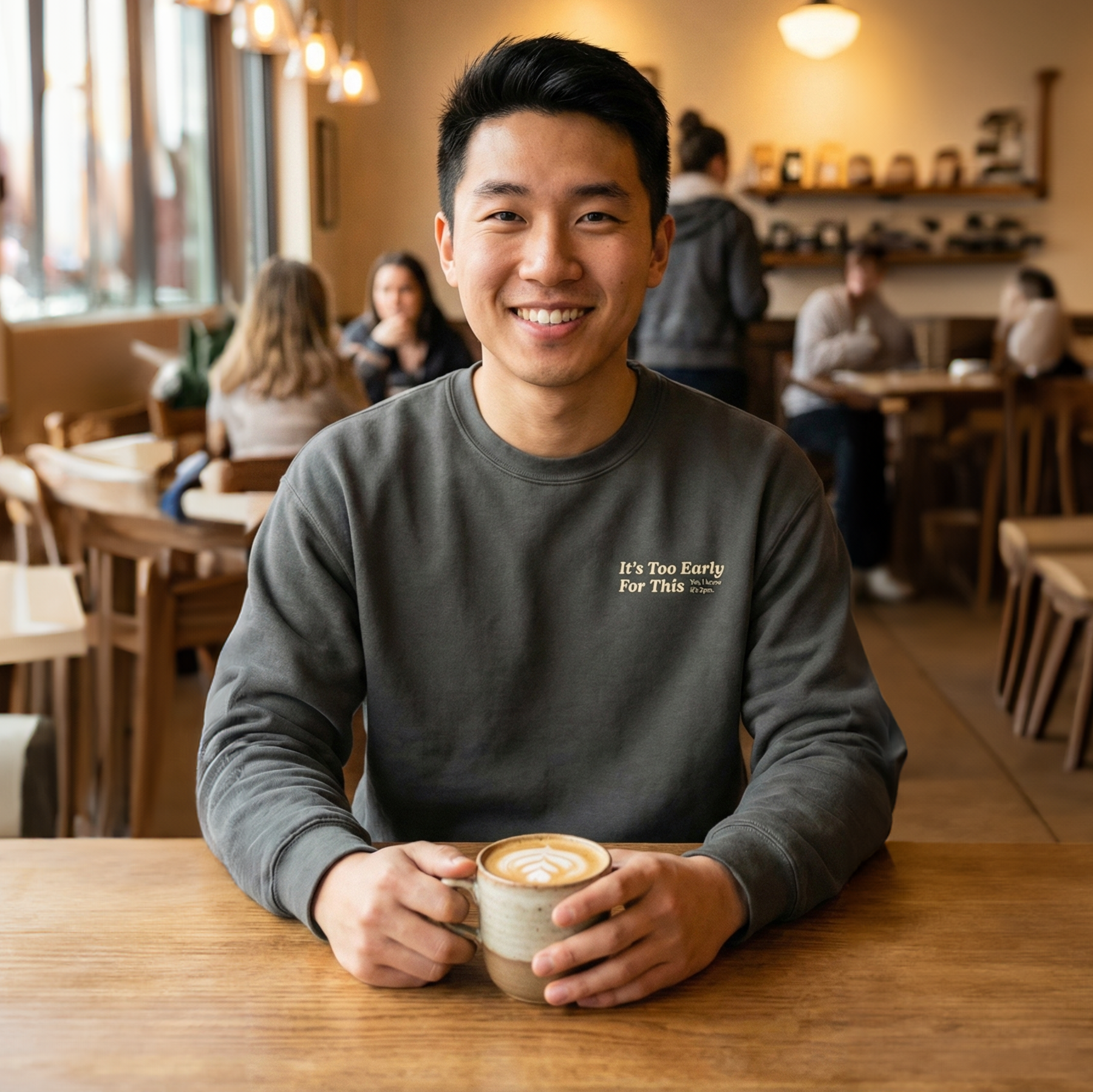 A whole mood in T-shirt form. The It’s Too Early For This Crewneck captures the universal struggle — whether it’s 7am or 2pm. It’s made for the caffeine-dependent and the chronically tired to wear all day long.
